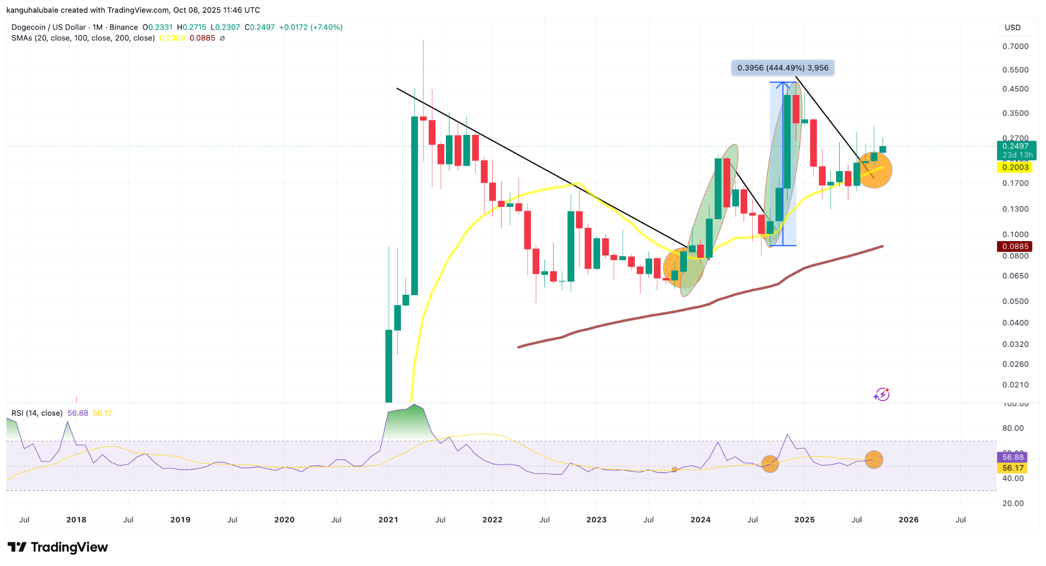 DOGE Price Eyes 160% Rally to $0.65 as RSI Sends Bullish Signal