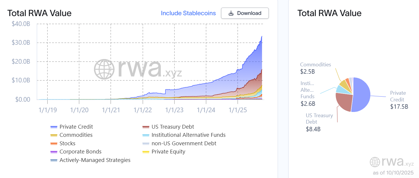 According to industry data from RWA.xyz, more than $33 billion in real-world assets (RWAs) have been tokenized on public and private blockchains, with private credit and US Treasury bonds leading the early adoption trend.